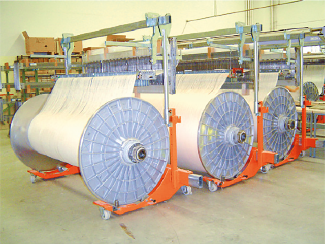 應用于經(jīng)軸穿綜作業(yè)的臨時存儲與中轉(zhuǎn),可用在各種門幅的織機經(jīng)軸上。
