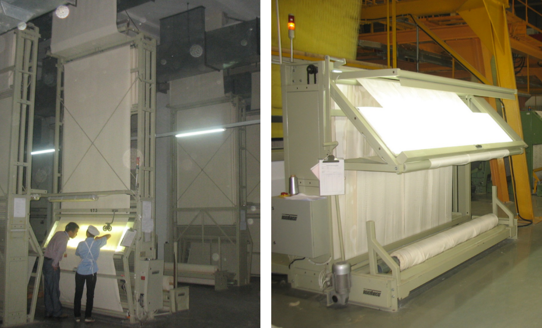 設備可儲存15~19米的織物,等待在線檢驗,檢驗完成后手卷,最終實現在線驗布、修布、收卷一體。